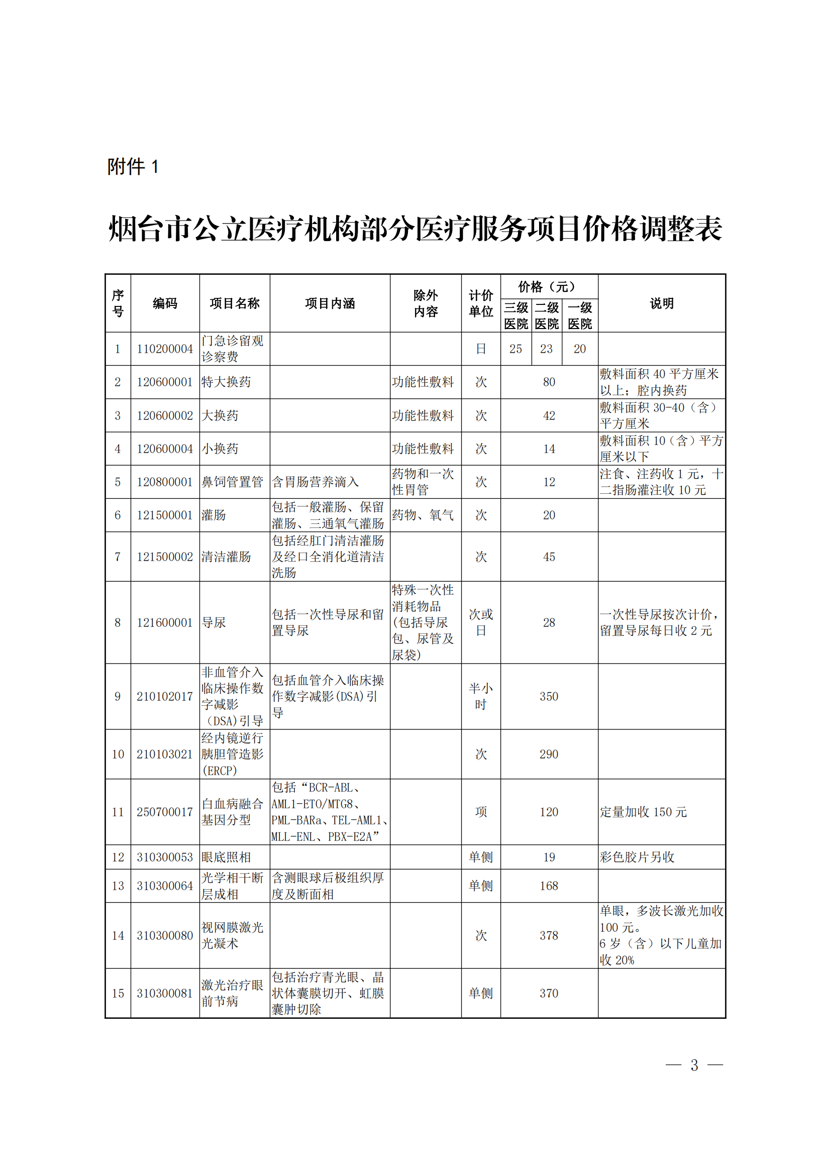 關(guān)于調(diào)整煙臺市公立醫(yī)療機構(gòu)部分醫(yī)療服務(wù)項目價格的通知